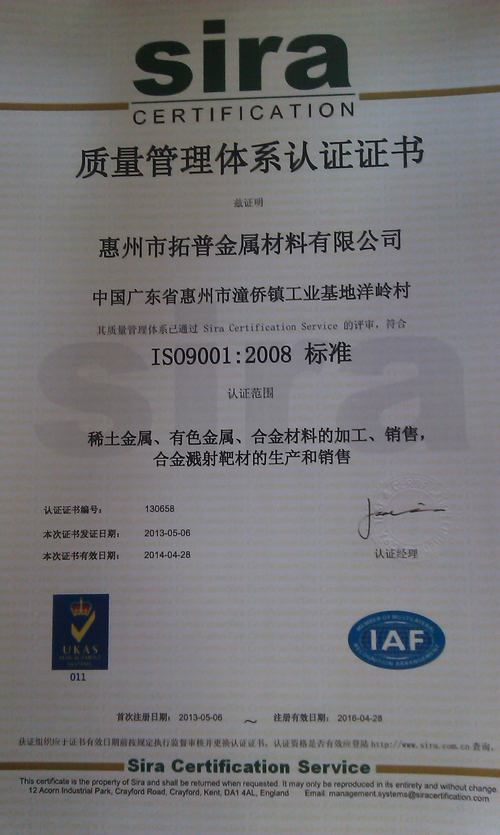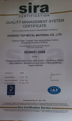 惠州市拓普金属材料有限公司是一家研发、生产各种有色金属、合金、各种溅射靶材和功能材料的国家重点高新技术企业。成立于1993年3月,总投资1.2亿元人民币,占地 30000平方米,并建有目前国内先进的多条生产线,
