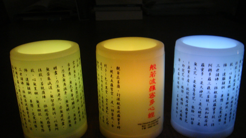 led電子蠟燭-般若心經BI_120_S29J1外型圓型,塑料,直徑7.5cmx高10cm。2緩慢自動七彩變色, -