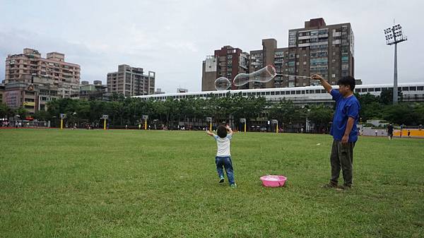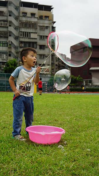 假日直接帶整盆的大泡泡&竿子出門玩泡泡,大人顯得輕鬆許多~哈哈哈哈