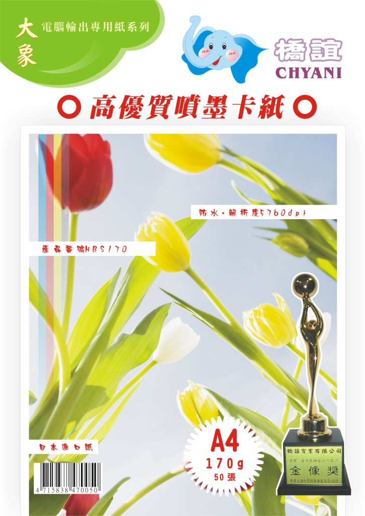 (一)高優質彩噴專用紙A4-100g產品番號:HBS100基重:(二)高優質彩噴專用紙A4-130g(三)雙面噴墨卡紙A4-180g(四)雙面噴墨卡紙A4-220g