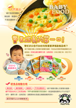 本公司是生產嬰幼兒副食品的公司,主打產品有寶寶元氣粥、寶寶成長粥、寶寶聰明粥、寶寶均衡粥、寶寶活力粥等五種即食粥列將,產品皆有檢驗合格證明,並投保五千萬的產品責任險,絕對安全、衛生、可靠,目前合作廠商已有數十家,知名的有麗嬰房,全球藥局,美的適藥妝店,小丁婦幼.....等,與嬰兒與母親雜誌配合刊登廣告,會刊登與本公司有配合的客戶,並刊登於2011婦幼用品採購年鑑。