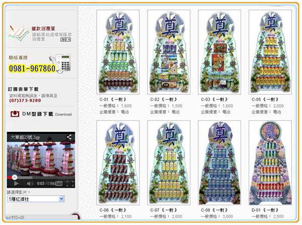 喪禮弔唁罐頭塔∥高架花籃∥氣派飲料塔羅馬花柱–歡迎電洽:0981-967860 -