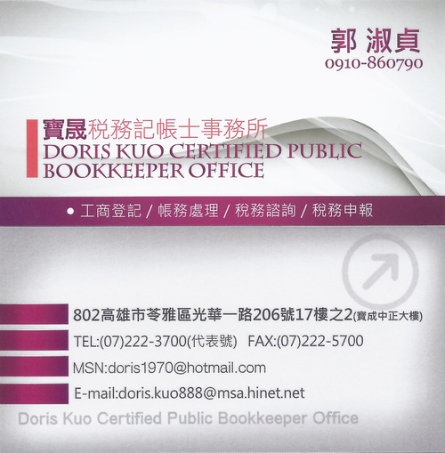 本所擁有二十餘年稅務及帳務經驗,由國家考試及格之郭淑貞記帳士執業