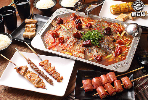 特色風味烤魚分享鍋:招牌麻辣烤魚鍋、新派茄香烤魚鍋、老家豆豉烤魚鍋、巫山魚香烤魚鍋、東北酸白菜烤魚鍋。