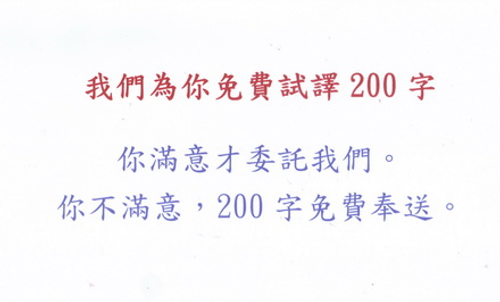 免費試譯200字,你滿意才委託我們。不滿意,200字免費奉送。